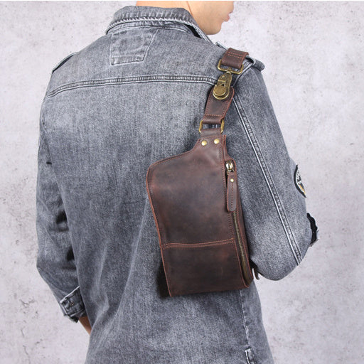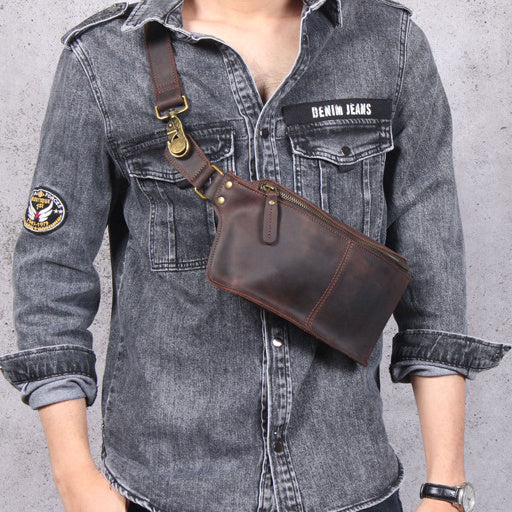 Men's Multifunctional Large-capacity Leather Chest Bag Retro Cross-body